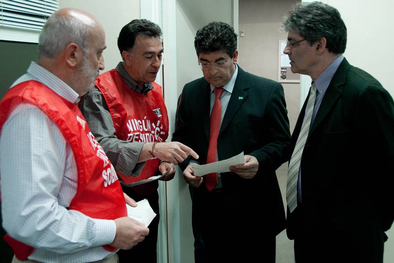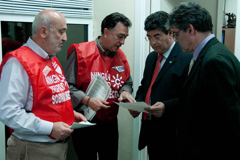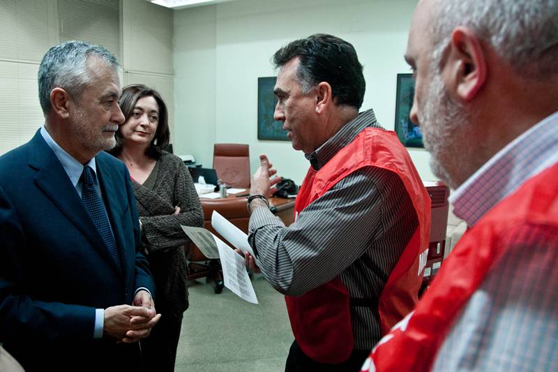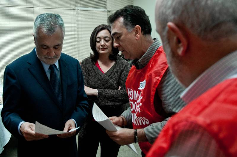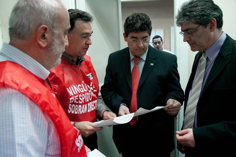 Tuvimos ocasión de entrevistarnos unos minutos, con el Presidente Griñán y la Consejera de Presidencia María del Mar Moreno (PSOE), así como con el candidato Diego Valderas y José Luís Pérez Tapias – Consejo Admón.- (Izquierda Unida) para insistirles en la problemática existente en la empresa, resaltando que Pablo Carrasco no había querido solucionar los 35 despidos, más allá del parcheo de algunos contratos por elecciones.